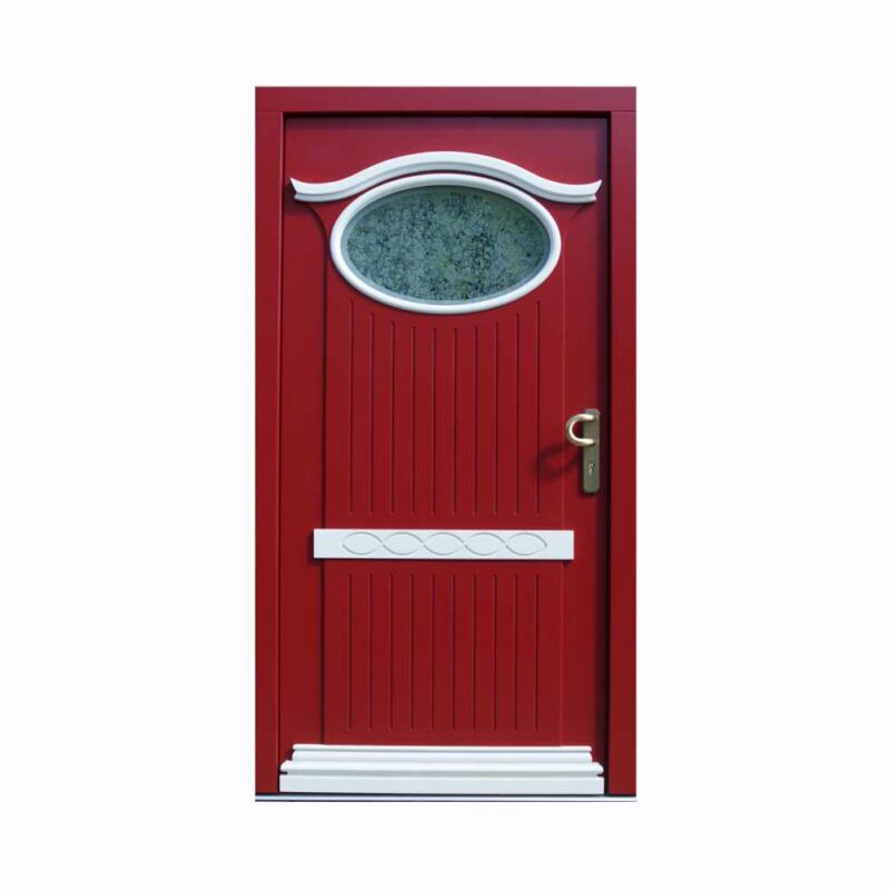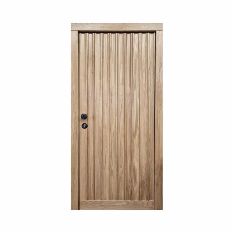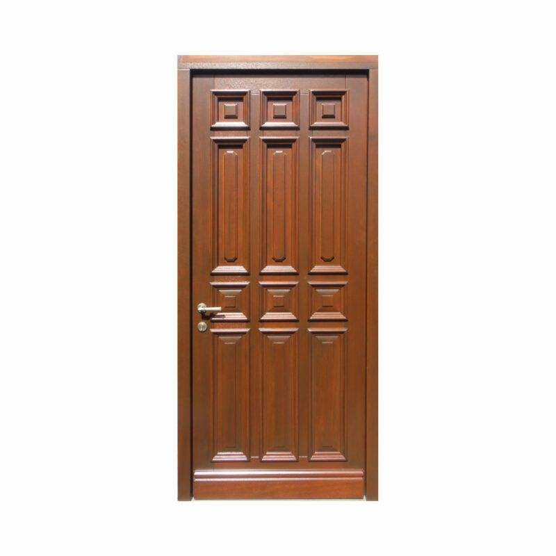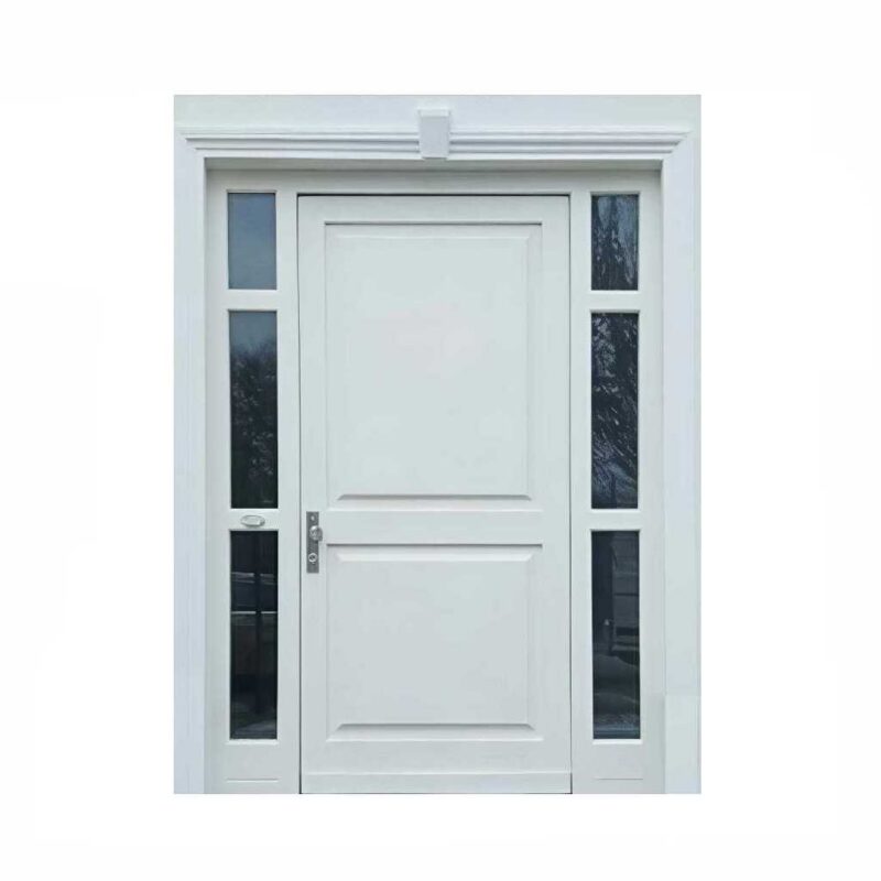 Do nowoczesnych domów polecamy drzwi wejściowe płytowe. Wykonujemy je na ramie z litego drewna klejonego warstwowo, gdzie konstrukcja skrzydła składa się z ramiaka drewnianego oraz wypełnienia specjalną izolacyjną pianką termiczną ze wzmocnieniem stalowym. Całość pokryta jest wodoodporną sklejką drewnianą – sosnową, meranti lub dębową. Taka konstrukcja pozwala na uzyskanie nowoczesnych wzorów drzwi o gładkiej powierzchni, wzbogaconych ciekawymi podfrezowaniami, wycięciami na szyby o różnorodnych kształtach oraz dodatkami ze stali szlachetnej. Dzięki zastosowaniu pianki poliuretanowej drzwi płytowe charakteryzują się podwyższonym współczynnikiem izolacji termicznej oraz akustycznej.