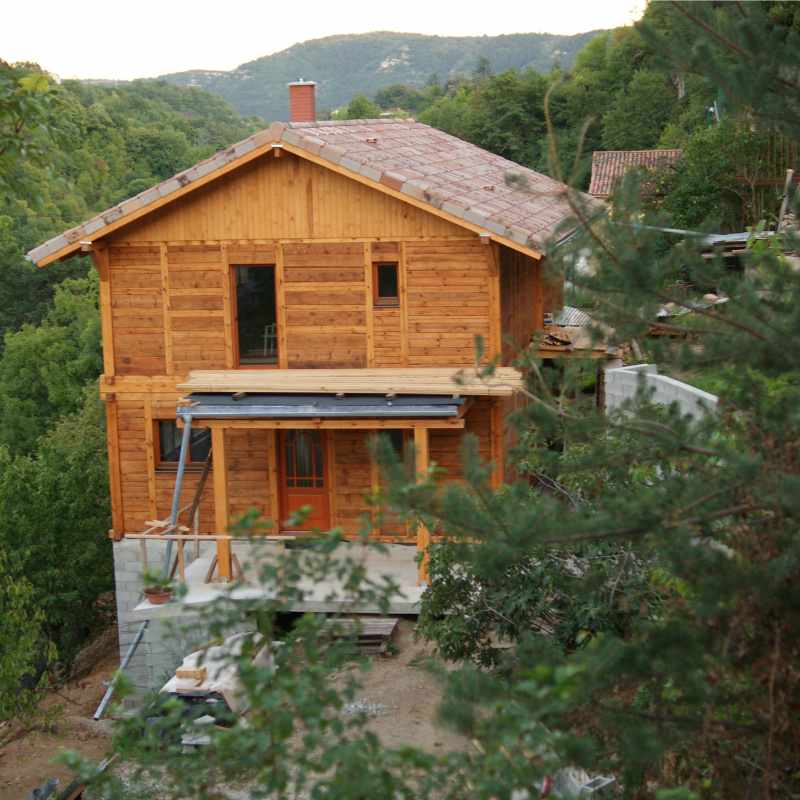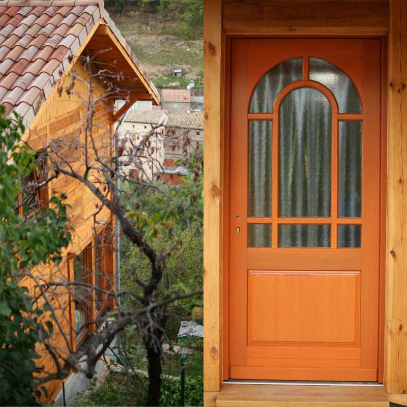 W drewnianym domu w miejscowości Lyas w południowej Francji firma Nieświec zamontowała kompletną stolarkę drewnianą: okna, drzwi zewnętrzne oraz drzwi wewnętrzne. Wisienką na torcie są drzwi tarasowe harmonijkowe, które po otwarciu pozwalają podziwiać piękny panoramiczny widok na historyczny most i okolicę przy kieliszku czerwonego wina.