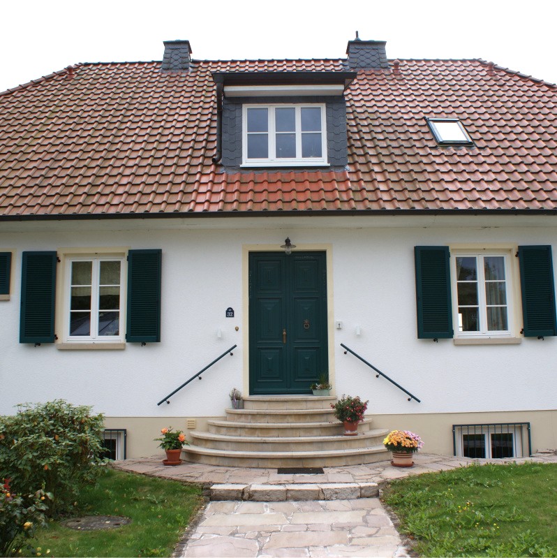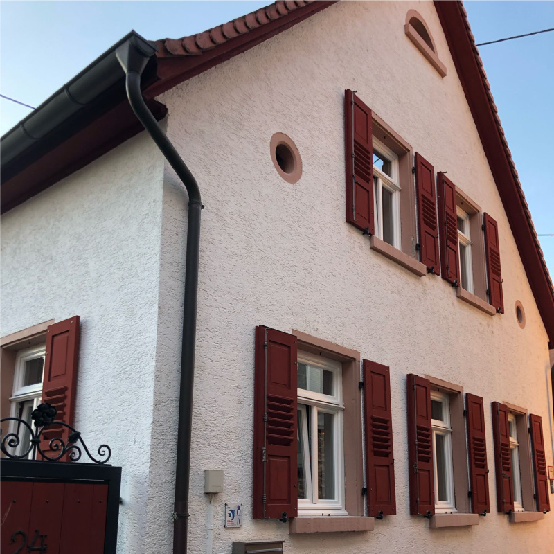 Dom z czerownymi okiennicami