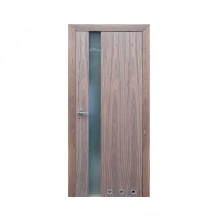 Ciekawe i nowoczesne drzwi gładkie z frezowaniami w skrzydle, przechodzącymi w jednej linii w przeźroczyste paski w mlecznym szkle w dostawce, wykonane z wysokiej jakości drewna, wzbogacone ozdobnym przeszkleniem, które idealnie doświetla pomieszczenie dodając im nowoczesności i przestronności. Dostosowane raczej do nowoczesnych wnętrz.