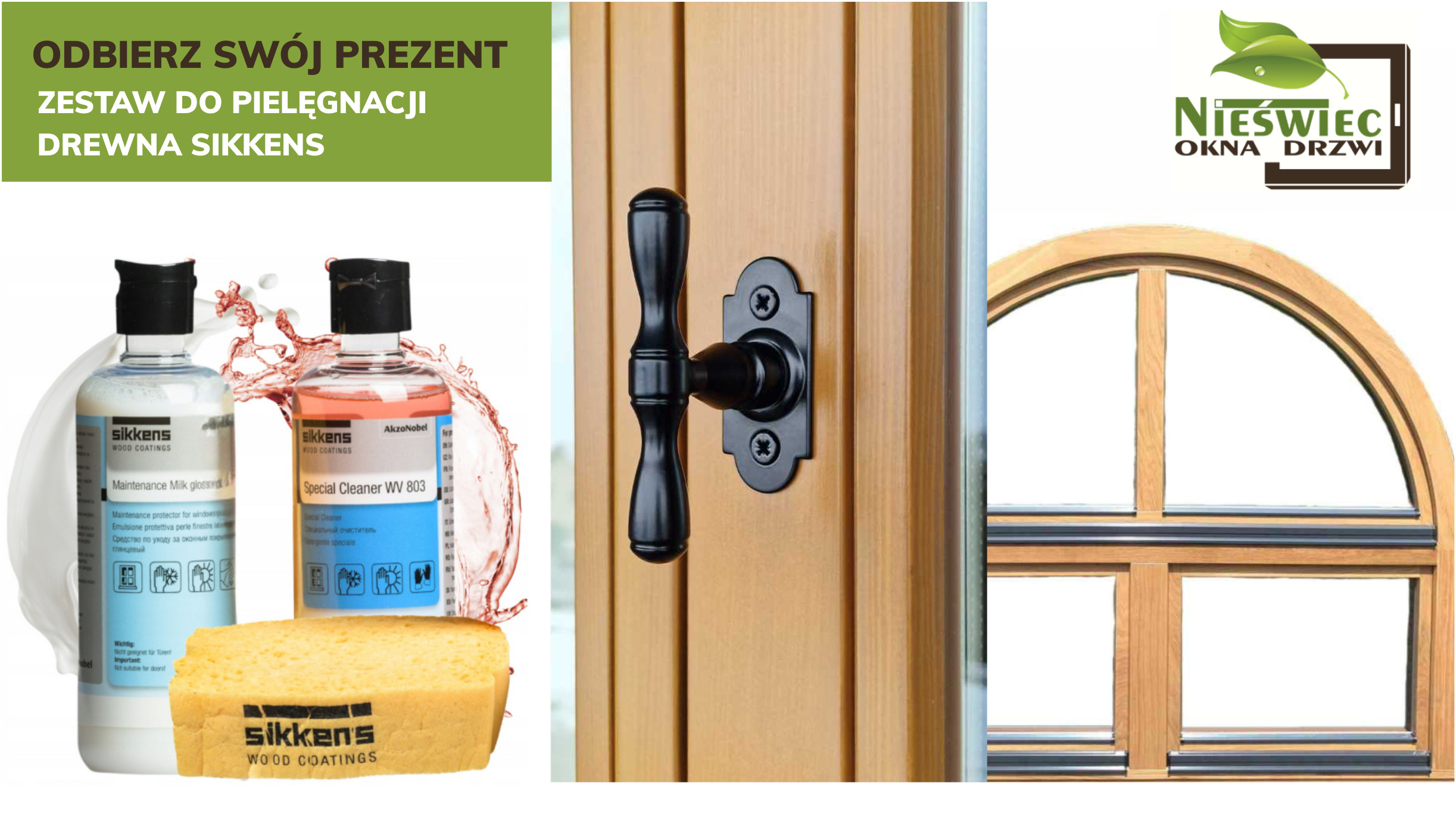 Zadbaj z nami o stolarkę drewnianą - do każdego zamówienia złożonego w maju, otrzymasz komletny zestaw do pielęgnacji stolarki drewnianej, renomowanej marki Sikkens.  Piękno drewna zachowasz na lata.